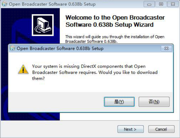 2. Windows系統(tǒng)安裝OBS軟件如出現(xiàn)以下情況,請先安裝補丁插件,插件下載地址:https://pan.baidu.com/s/1IUv-dVlPJXPPknzJSPXmvg