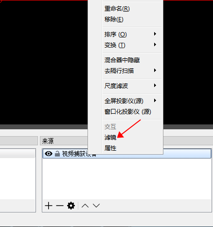 6. 為了使音視頻同步,設(shè)置視頻延時(音視頻同步正常,可跳過此環(huán)節(jié))右擊“視頻捕獲設(shè)備”,選擇“濾鏡”