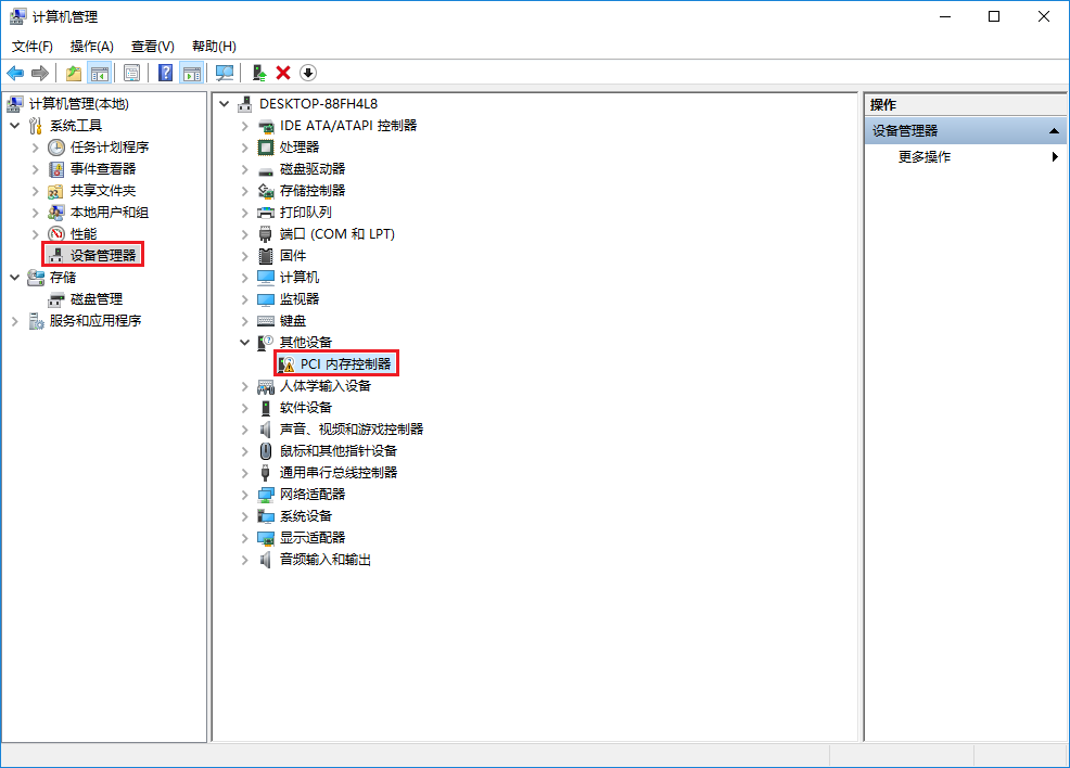 驅(qū)動未安裝前,設備管理器里的其他設備顯示了個“PCI內(nèi)存控制器”