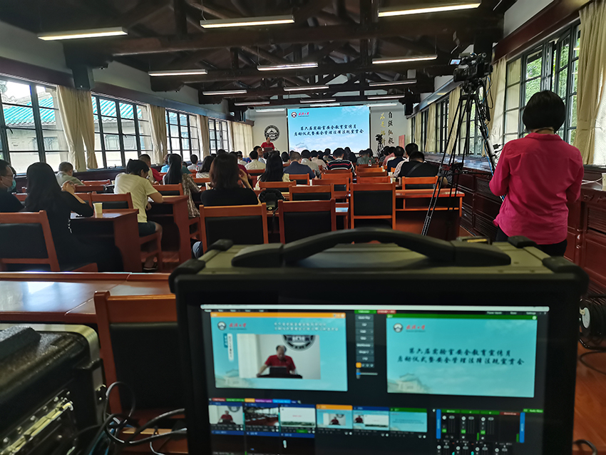 9月8日下午,武漢大學(xué)第六屆實驗室安全教育宣傳月活動正式拉開帷幕,啟動儀式采用線上線下相結(jié)合的方式進行。校黨委常委、副校長李資遠、實驗室安全領(lǐng)導(dǎo)小組成員單位負責(zé)人以及各學(xué)院、科研平臺分管領(lǐng)導(dǎo)參加啟動儀式,全校1500余名師生在線收看啟動儀式直播。本次會議直播由于思非全程提供技術(shù)支持,運用四通道導(dǎo)播一體機采集雙機位畫面,并直接推流到第三方直播平臺保證了線上線下會議的正常進行。