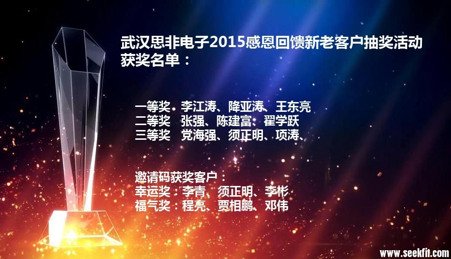 獎(jiǎng)品已全部發(fā)放完畢!恭喜以下獲獎(jiǎng)客戶,思非電子會(huì)不定期的舉行各種活動(dòng),敬請(qǐng)期待!